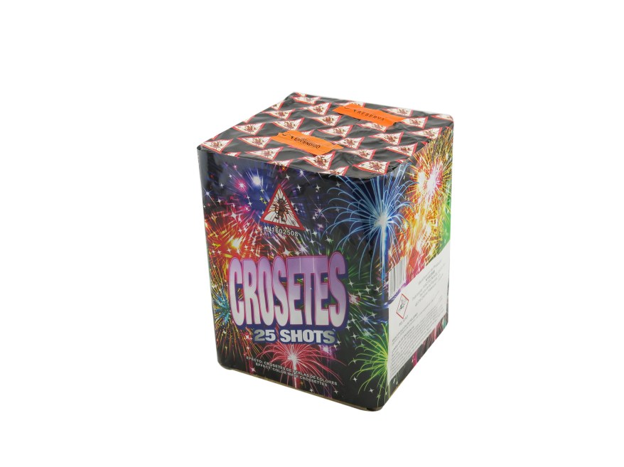 Batería 25 disparos consecutivos troncos de color con apertura de crosetes de colr y un final de 5 disparos de golpe del mismo efecto. CASTILLO PARA LA NOCHE.