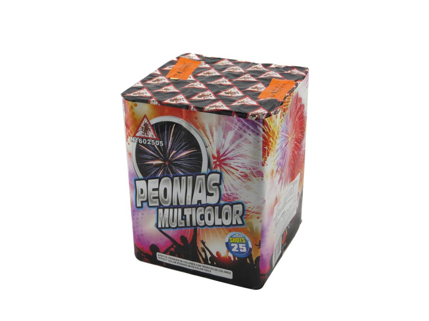 Batería 25 disparos consecutivos de troncos de colores con palmeras de diferentes colores con un gran arrebato final de peonias de colores. CASTILLO PARA LA NOCHE.