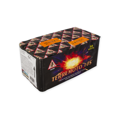 Batería 50 Disp. con troncos de colores a trueno de titanio con volcán de cracker (10 seg.) CATEGORÍA 3