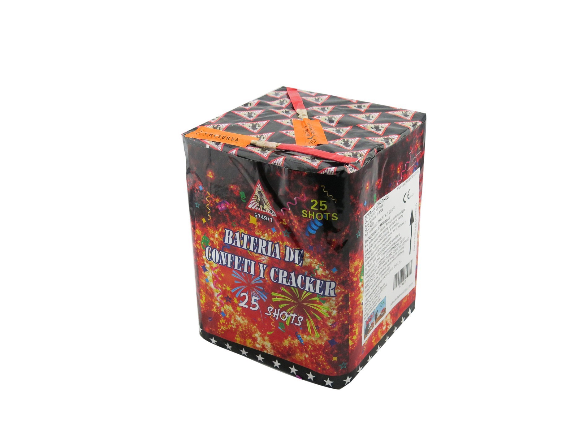 Batería de 25 Disparos consecutivos que realiza explosiones de confeti y cracker de gran intensidad y altura. Categoría 3.