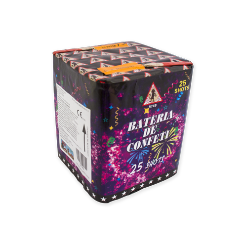 Batería de 25 Disparos consecutivos que realiza explosiones de confeti de gran intensidad y altura. Categoría 3.