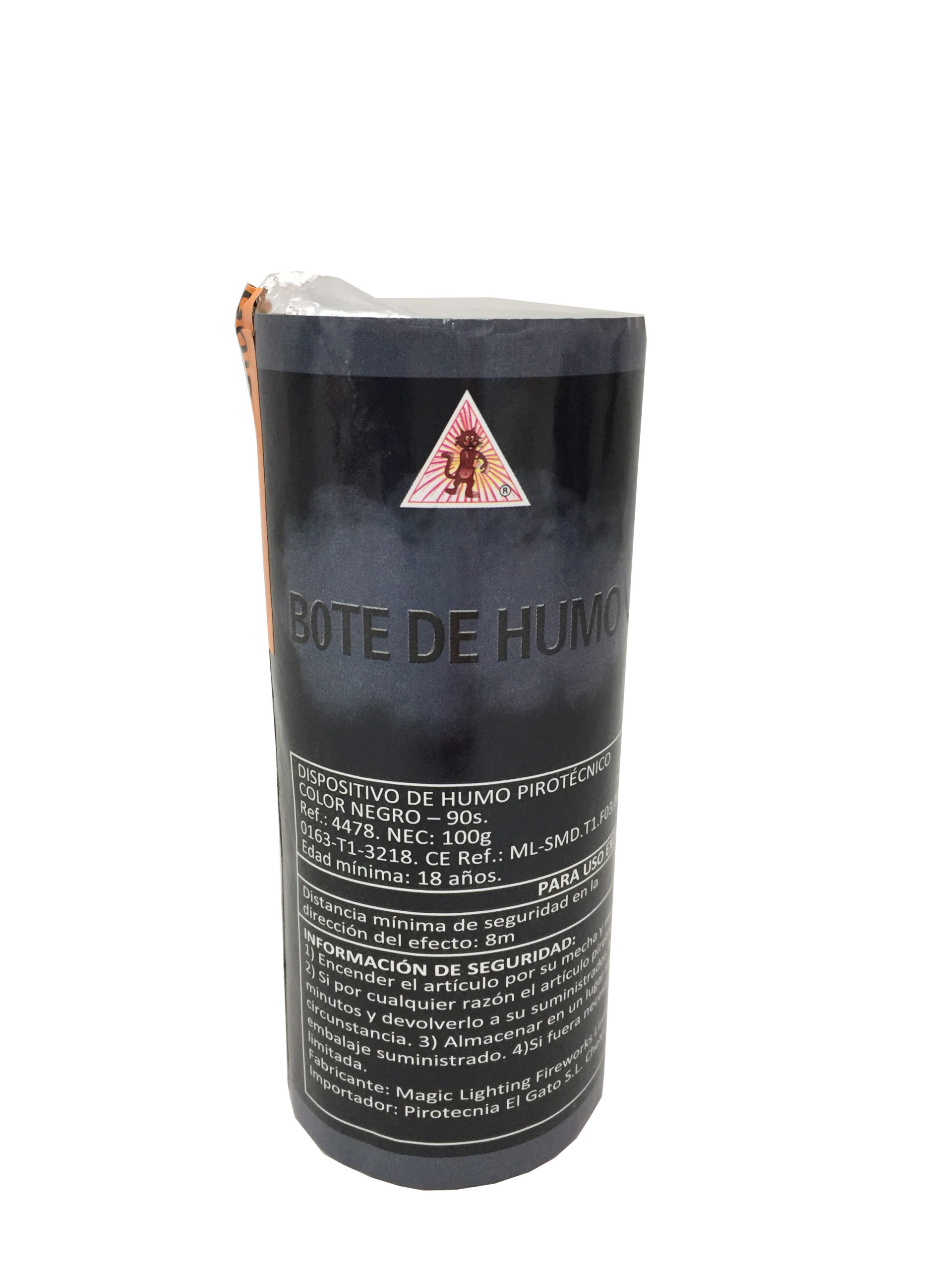 Bote de humo de color negro que tiene de duración 90 segundos. CATEGORÍA T1.