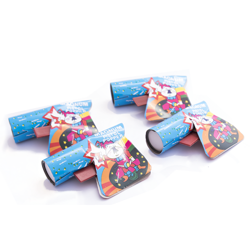 Articulo infantil que lanza serpentinas de colores. CATEGORIA 2.